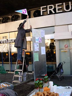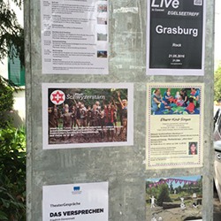 Standplatz für ein Flugblatt ist gesichert. Weitere Flyer werden angebracht, sofern genug Platz vorhanden ist.