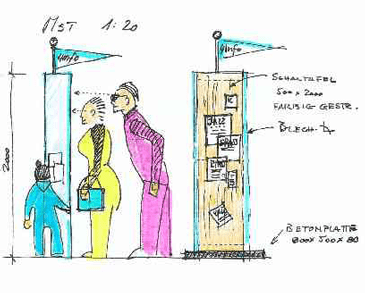 An 12 ausgewählten Standorten auf privatem Grund befindet sich je eine Infosäule. Die Konstruktion erfolgte durch ein Integrationsprogramm.